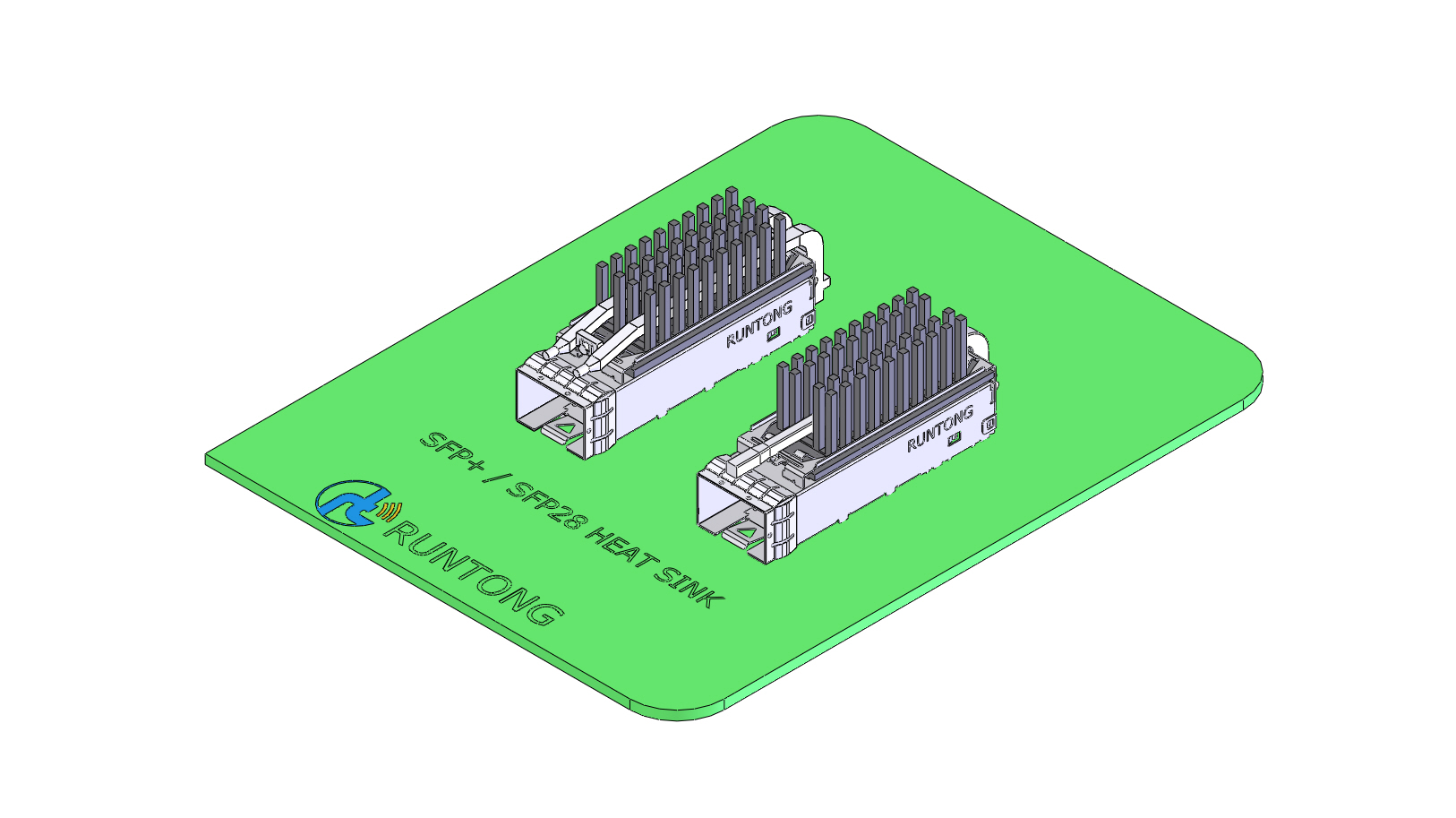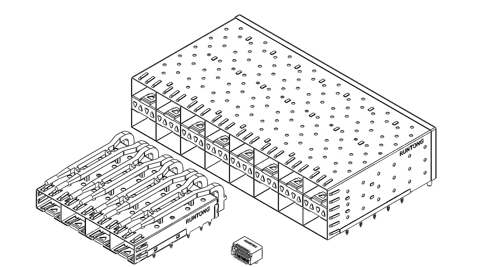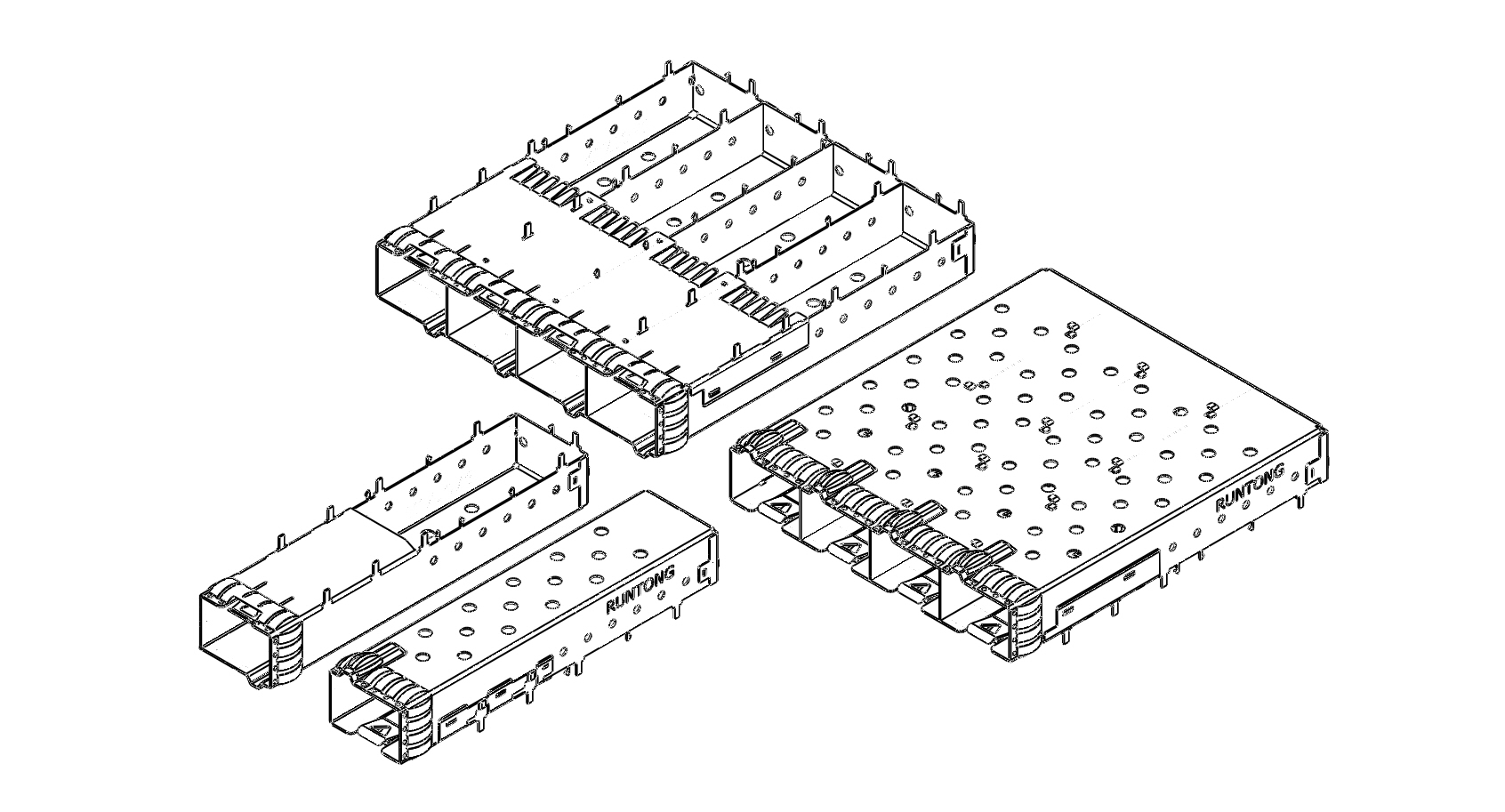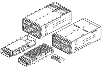 XFP connectors, cage assemblies, and 10 Gigabit Ethernet. The cage /plug interface features an intuitive latch system, gasketing features for excellent EMI containment, he heat sink is mounted to the cage using a clip, which provides a load to maintain contact between heat sink and module.